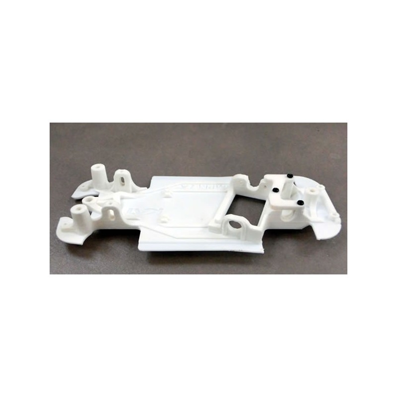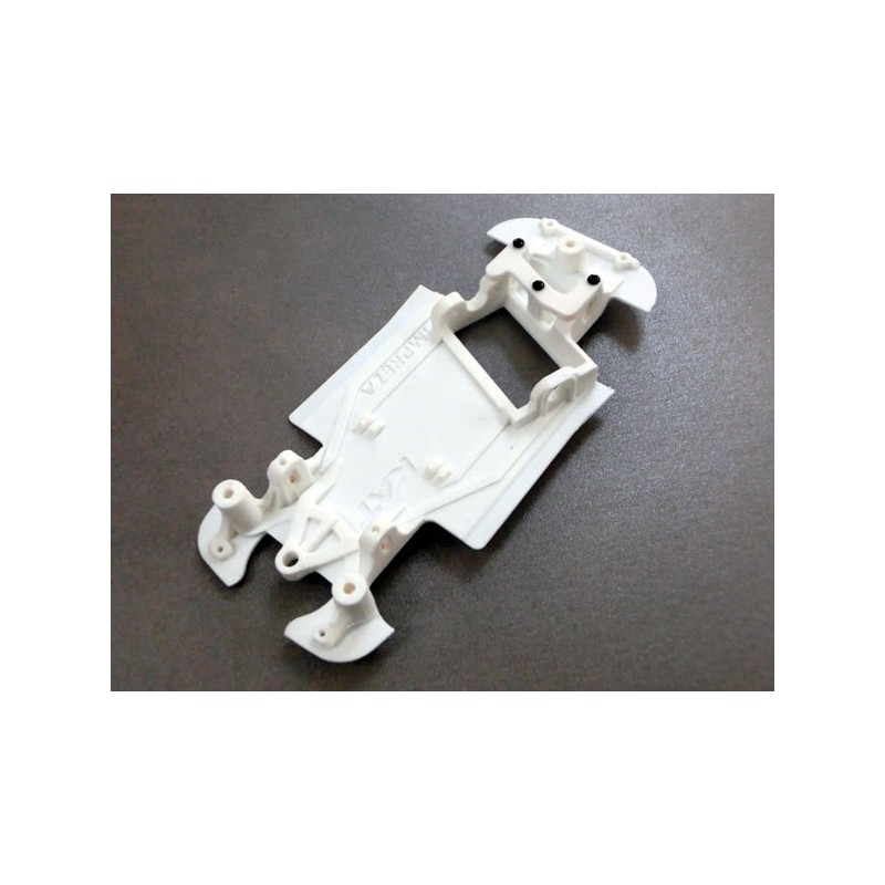 La marca Kat Racing ha fabricado en la parte trasera piezas para la sujeción de los cojinetes. El modelo AW lleva una tapa con tres tornillos. Las guías recomendadas para el montaje del chasis son de la marca Sloting Plus referencia 101001 y la 101002, Scaleauto SC1608 y NSR 4842.